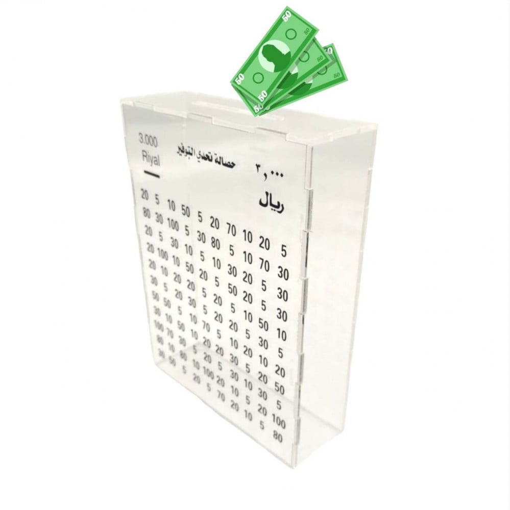 حصالة تحدي التوفير الشفافة - أكريليك بحجم 3000