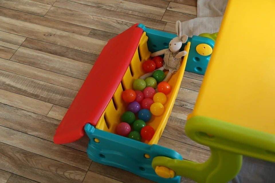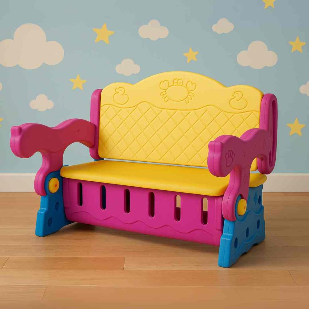 3. كصندوق تخزين: يمكن رفع المقعد لتخزين الألعاب أو المستلزمات الخاصة بالطفل بسهولة.