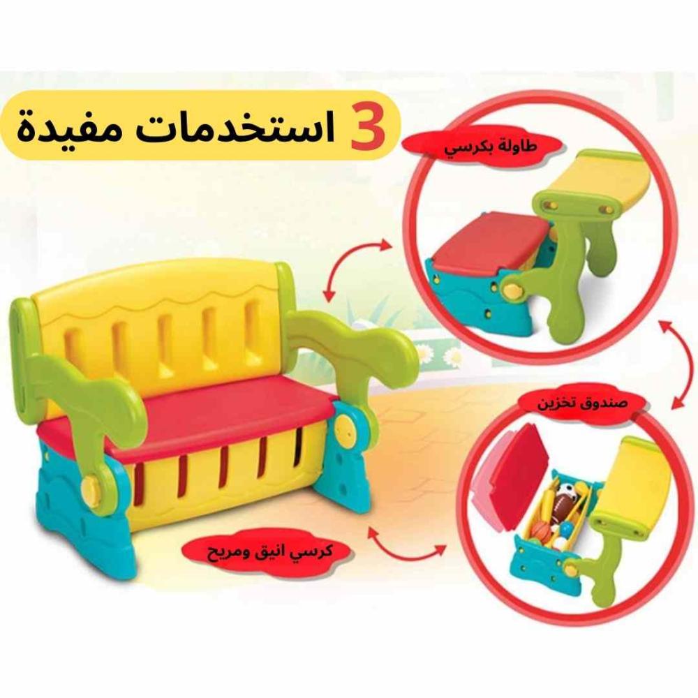 طاولة متعددة الاستخدامات 3 في 1 تجمع بين كرسي، طاولة، وصندوق تخزين، مثالية لتنظيم ألعاب طفلك وتوفير مساحة للدراسة أو اللعب.