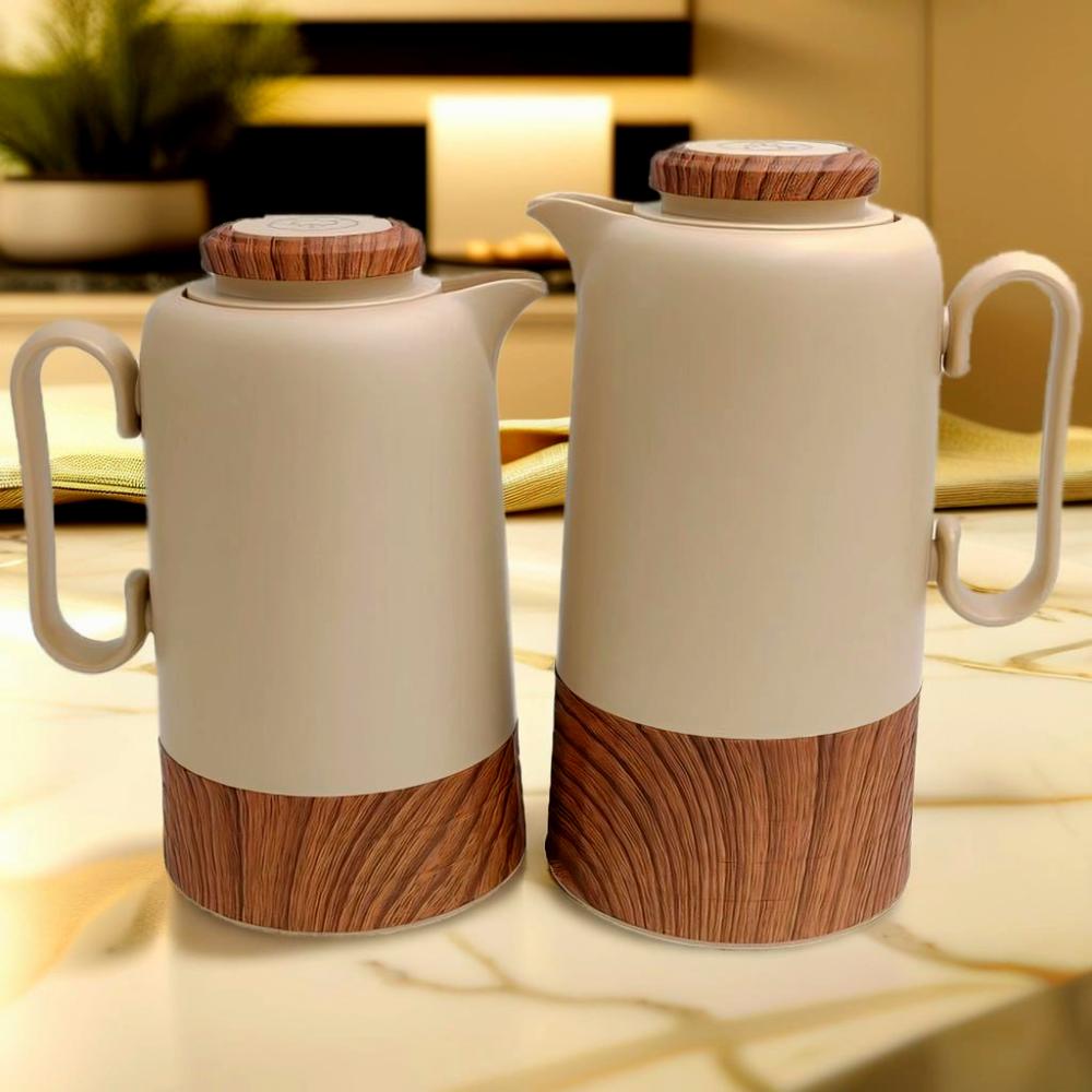 أضف لمسة من الأناقة إلى ضيافتك مع طقم ترامس الشاي والقهوة رويال بتصميمه البيج مع البني الخشبي الجذاب. يتميز الطقم بجودة عالية وتصميم عصري عملي يناسب كل المناسبات. بفضل نظام الفتح والإغلاق باللف، يوفر سهولة في الاستخدام وأداءً مثاليًا لحفظ حرارة المشروبات لفترات طويلة. الاختيار المثالي لضيافة راقية.