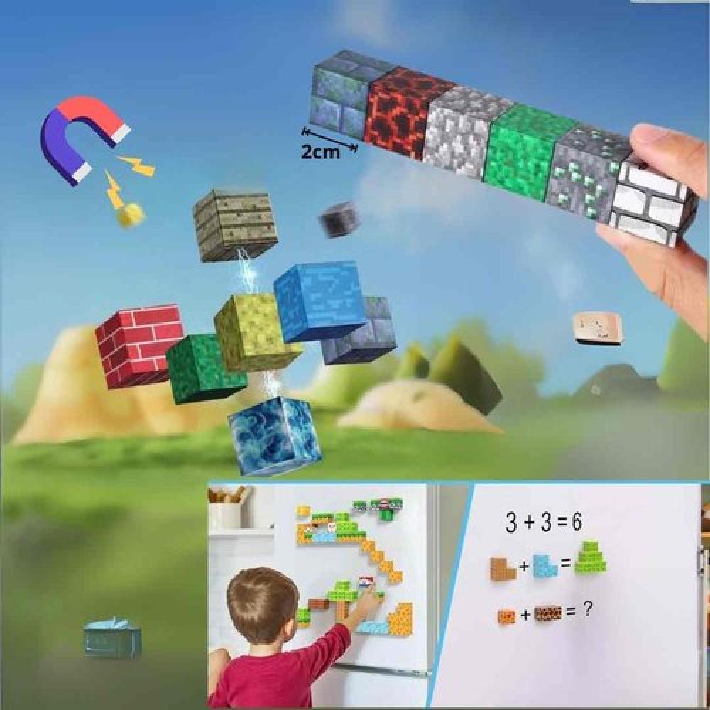 اجعل اطفالك يبدعون بدون شاشة جوال مع مجموعة مكعبات ماين كرافت المغناطيسية! مستوحاة من اللعبة الشهيرة Minecraft، تأتي هذه المجموعة بـ96 قطعة ثلاثية الابعاد تحتوي على مغناطيس داخلي لتكوين اشكال ومجسمات لا نهائية.